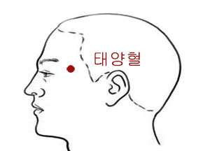 태양혈은 눈썹 끝과 눈꼬리 사이, 관자놀이 부근에 위치하며, 눈 피로와 함께 뇌의 무거움을 줄이는 데 도움을 줍니다.