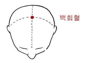 백회혈은 정수리 중앙에 위치한 점으로, 손가락 끝으로 가볍게 누르며 원을 그리는 동작을 반복하면 두통과 뇌피로 해소에 효과적입니다.
